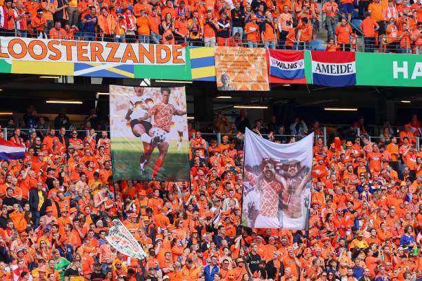 汉堡人民公园球场的看台上,出现了一面巨大的橙墙。荷兰球迷们打出系列条幅,上面的主角们是1988年欧洲杯的冠军英雄。荷兰球迷们的装束,包括亮橙色假发、细条纹套装、镶豹纹外套和几何纹球衣,让你感觉自己身处80年代末的一家舞厅俱乐部。表演内容:看台球迷秀。主题:向过去致敬。着装要求:复古街头风。就这样,数量众多的球迷选择穿上了那件经典的荷兰队1988年球衣。问题来了:当你看到那件球衣时,你会想到什么?