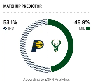 开云体育入口-ESPN预测明日比赛:步行者胜率为53.1%,雄鹿胜率为46.9%